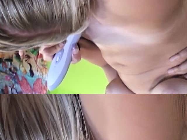 Tempted blonde lesbian girl gets her little pussy fingered and dildoed