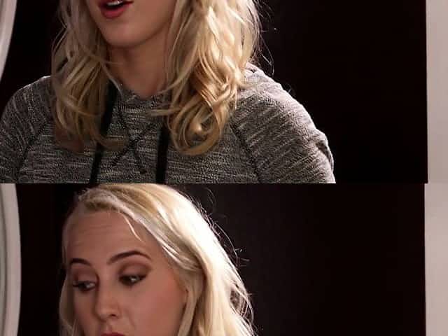 A brunette lesbian making her curious blonde stepsis squirt