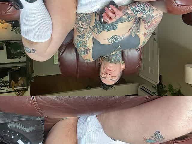 Buff Butch Tattooed Dyke Rubs Plays with Bulky Wet Snatch After the Gym,Jockstrap, Lesbo, Muscles