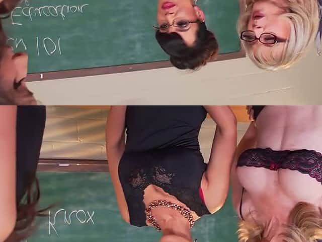 Three very hot lesbian teacher in the classroom