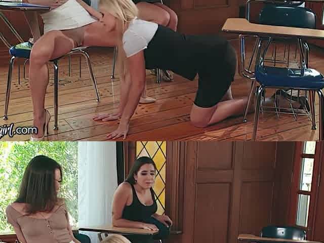 Lez teens enjoy classroom pussylicking 3way with teacher