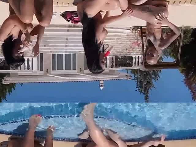 Outdoor threesome by the pool with Rosa Rosita and Alice Alisaki