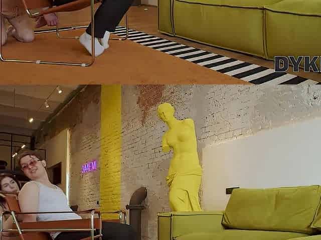 DYKE4K. Lesbian Babes have a fun trio whilst chap can't move in the handcuffs