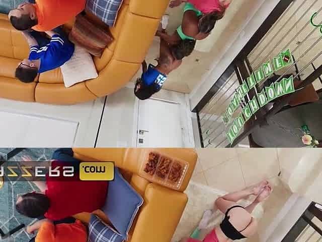 2 neighbors prepared breakfast for their ally and had sex after in the kitchen.
