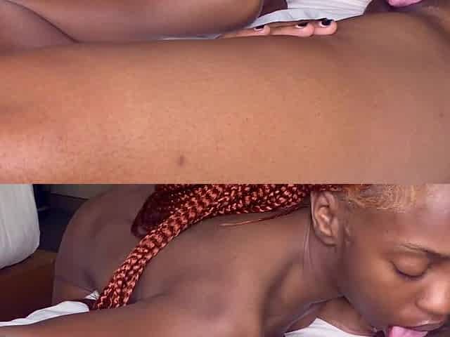Sexy black likes licking those balls and sucking this rod