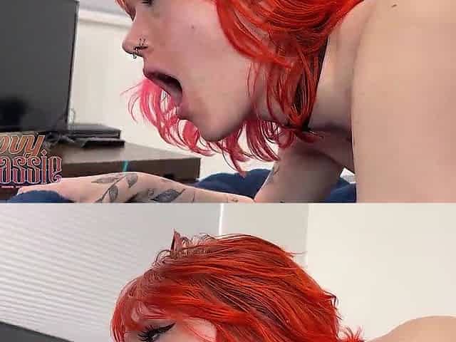 Redhead Gal with Large Bazookas Loves to Ride Knob