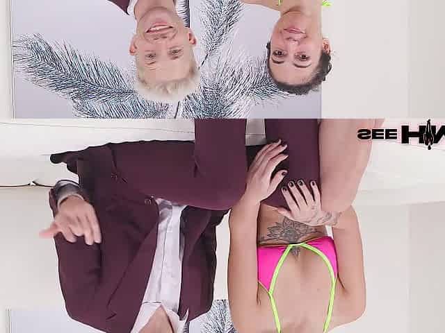 Santa helper screwing Santa's large jock below tree at ClubSweethearts