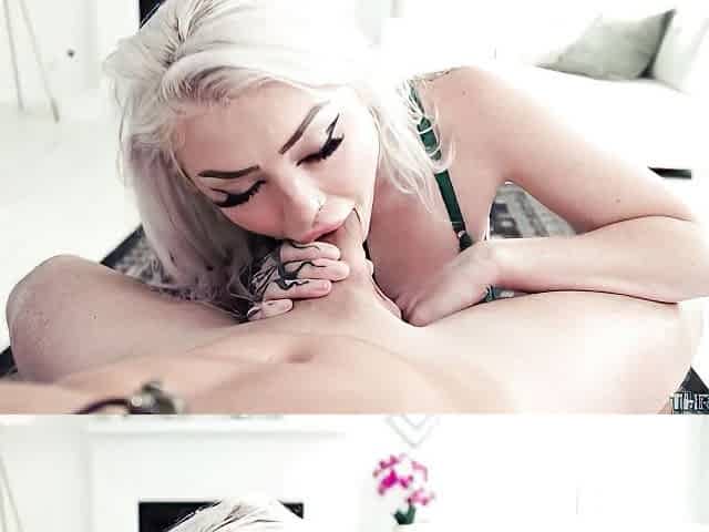 Impressive blonde model Ellie Smoke knows how to suck a dick