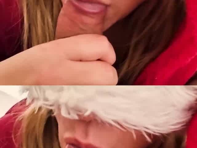 Beautiful long hair beauty gets a facial after giving a blowjob and licking balls