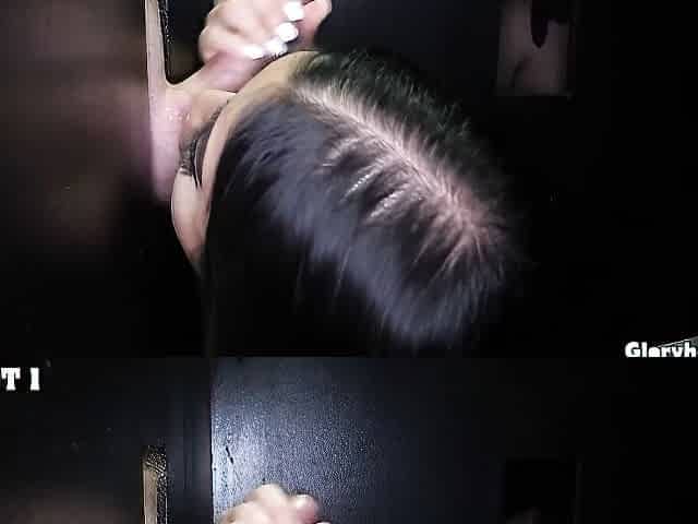 Gloryhole dick-sucking session with a hot brunette Emerald Love