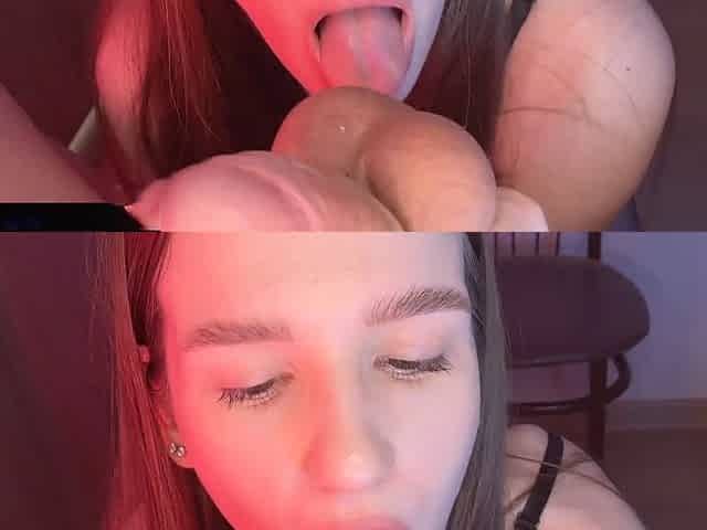 An innocent angel Dolly Leigh is sucking a big dick in close-up