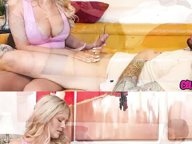 Blonde babe takes on a big cock in lingerie