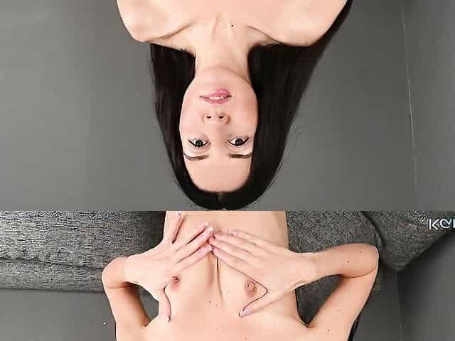 Miniature and skinny brunette Katty West is fucking with a pink dildo