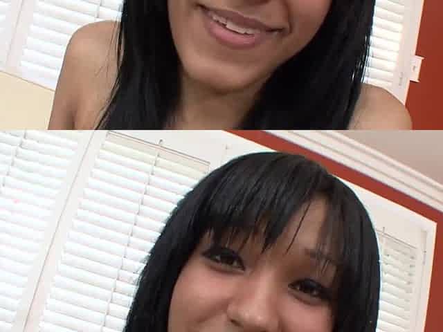 A youthful, tiny Lalin girl with a very bushy pussy swallows all that landed on her tongue