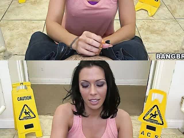 A hot and slutty babe Aubrey Adams gives a sweet handjob