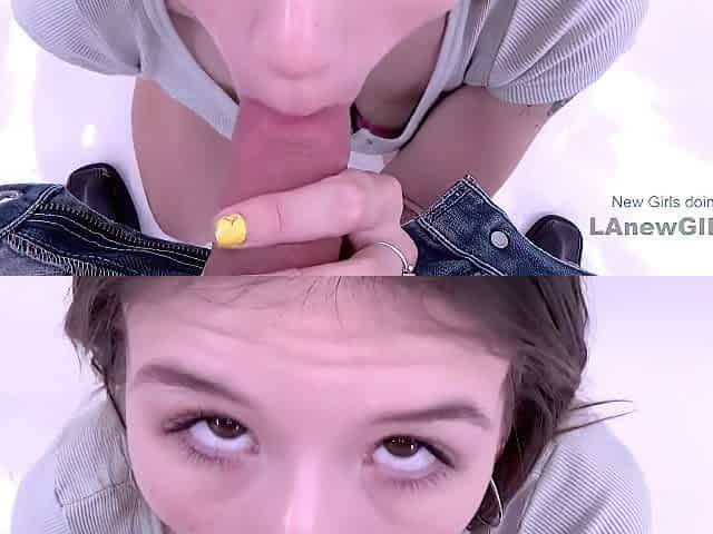Beautiful young blonde Jill Taylor is sucking a dick on the knees