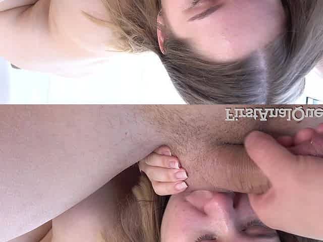 Horny Petite Girl Sucking Big Balls and Licks His Cum