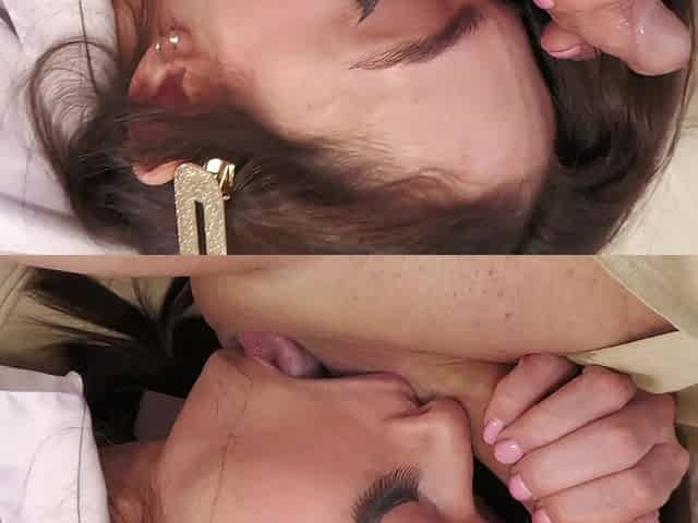 Wife and girlfriend suck dick - blowjob, ball licking, cum on tits, ffm threesome amateur MybestGF
