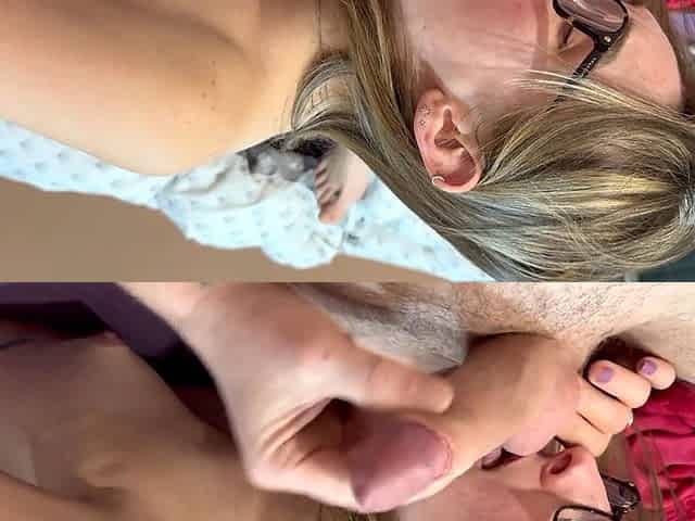 Amateur blonde gives a steamy handjob and blowjob with a messy finish