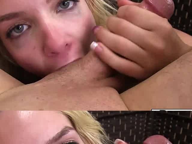 POV video of a beautiful blonde girl giving head and riding it