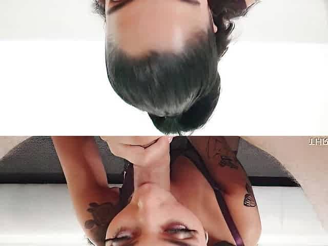 Sensual Latina with tattoos Vanessa Sky is sucking a big cock