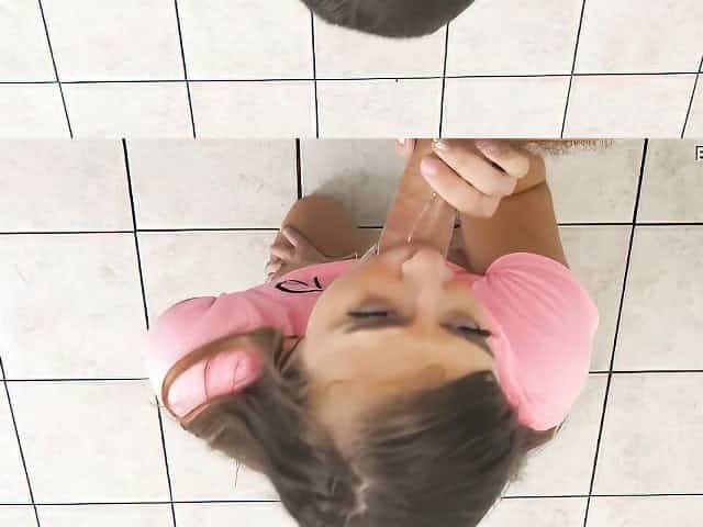 Short-haired blonde Chloe Temple is sucking a dick on the knees
