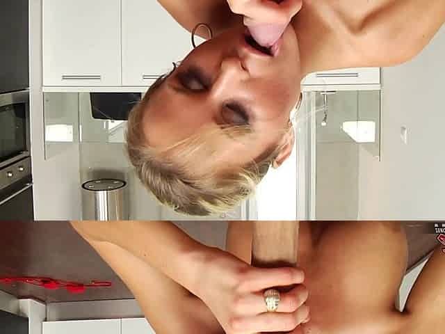 POV video of pretty Laura Crystal sucking a large dick in the kitchen