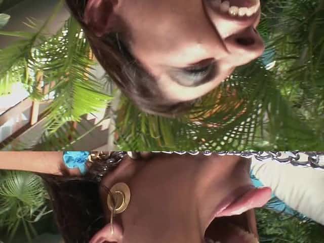 Brunette chick Natasha Nice gets talked into drooling on a dick