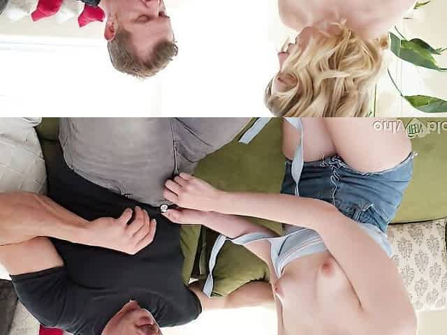 Blonde teen Sophia Sterling sensually sucking on the knees