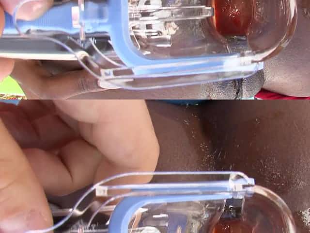 Shoving lube into her asshole and fucking her with his big cock