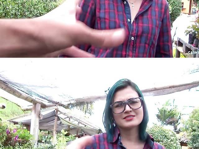 Green-haired babe with blue eyes Madison Phoenix pays for the ride