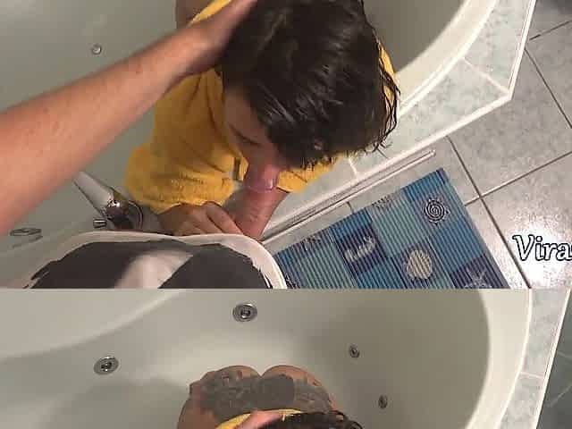 Напихал в рот своей соседке прямо в ванной