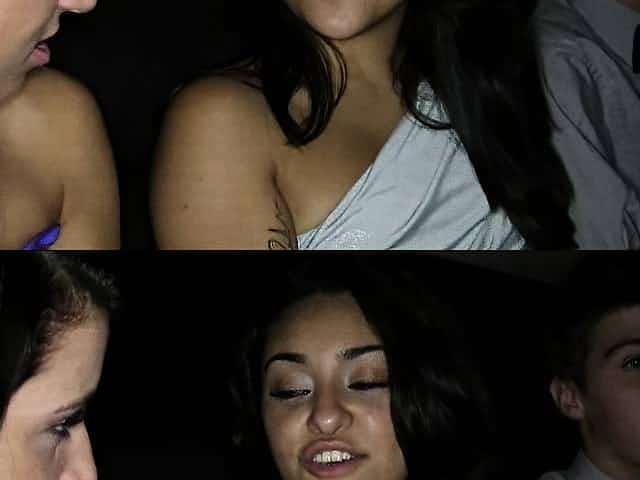 Party sluts flash their tits while in the back of a limo