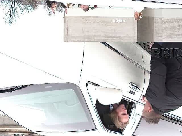 VIP4K. Random passerby scores luxurious bride in the wedding limo