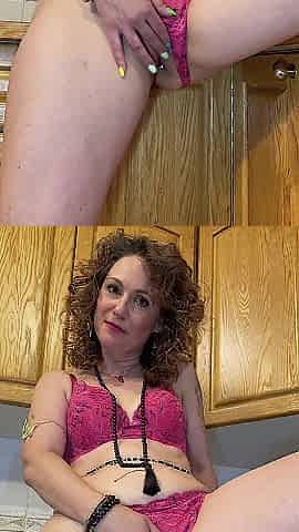 Chubby MILF in stockings Candence Shanti plays with her shaved pussy