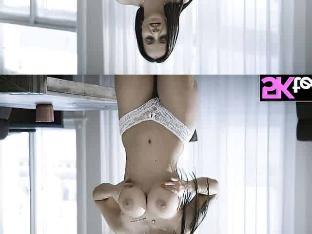 Busty goddess in sexy white lingerie Lia Mango shows off her body