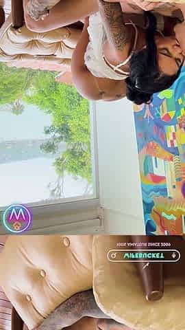 Garota tatuada exibindo-se com shortinho curto e provocante.
