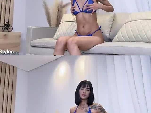 Shay Laren sensually undresses from her underware brassiere and pants on the couch