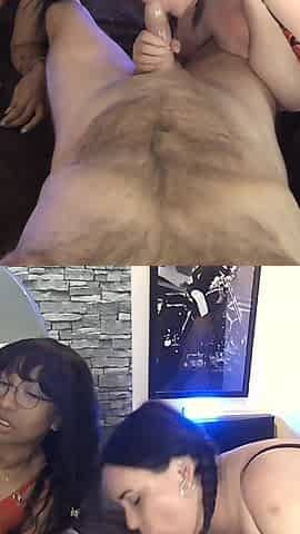Naughty ladies fucking a lucky stud in ffm threesome