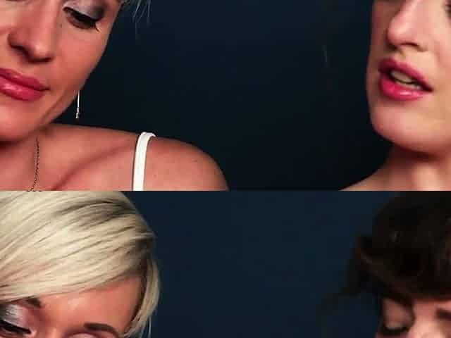 Blonde and brunette lesbians toying cunt