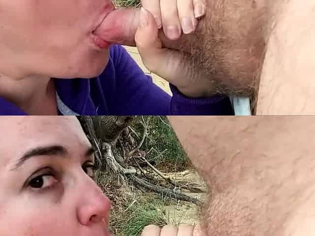 Public Blowjob by a Stunning Brunette MILF Who Swallows