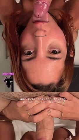 Mi hermanastra pelirroja me da la mejor garganta profunda y le lleno la cara de leche