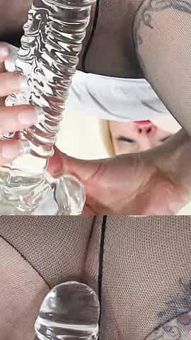 Blonde in Stockings Fists Wet Pussy with Vibrator