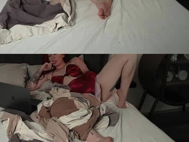 Hot redhead in ebony underware enjoying herself home alone