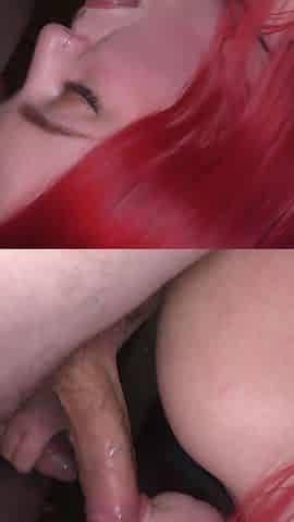 Redhead Babe with Small Tits Gets Her First Bukkake