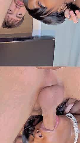 elle garde sa jupe vinyl pour lui faire une gaterie