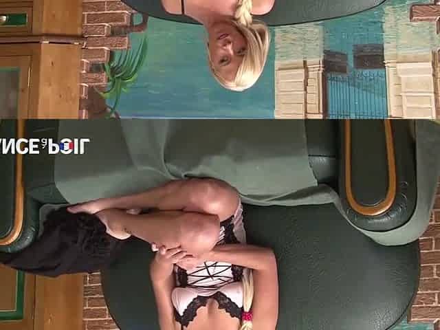 Blonde With Stockings Blowjob While Anal Toy