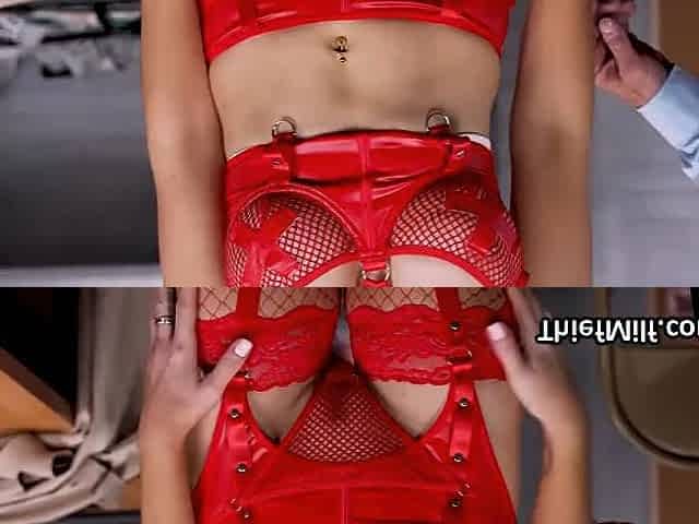 Passionate Asian girl in red lingerie seduces fully xxx special porn show