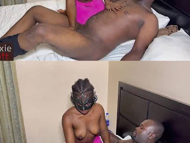 Slender thick hot Nigerian cutie sucks and ride her guy