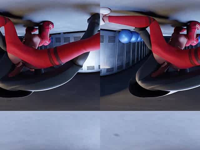Girl gets dped by strapon in Lesbian threesome in the locker room